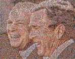“Mission Acomplished” indeed. Ah, e Dick Cheney diz que os mortos voluntariaram-se para ir. The Huffington Post. A imagem é um mosaico constituido por imagens dos soldados mortos (os civis mortos davam para fazer um mural).