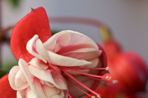 Fucshia de variedade não identificada. Devido a um pequeno “incidente” na transplantação, ficou sem folhas nem flores. A flecha (ramo central) acabou por secar e cortei-a. E agora está redondinha e mais bonita que antes. Quem ensinou o Homem a podar foi mesmo um burro, não deve ser mito.