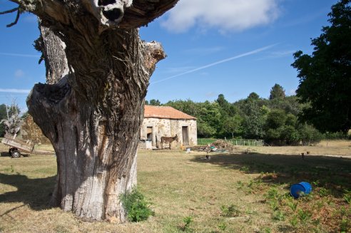 Um castanheiro multi-secular, um burro e dois cães. Todos desgraçadinhos. Já repararam nos constantes rastos de condensação dos aviões? Foi algo que me impressionou sob os céus do Sabugal.