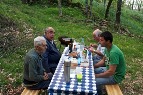 Quem escreve, tirou a foto. Mas o meu pai é o mais velho da direita. Os comes e bebes aqui são basicamente grelhados, salpicão (fumados), queijos e coisas assim. Vinho também (mas eu não bebo vinho).