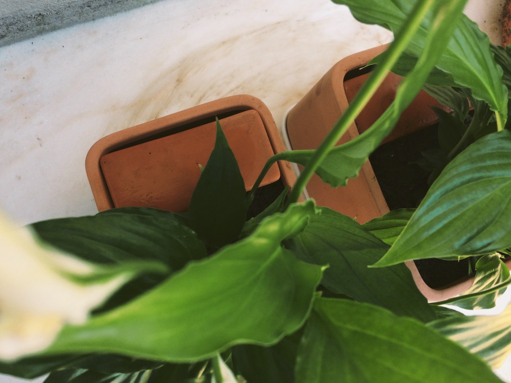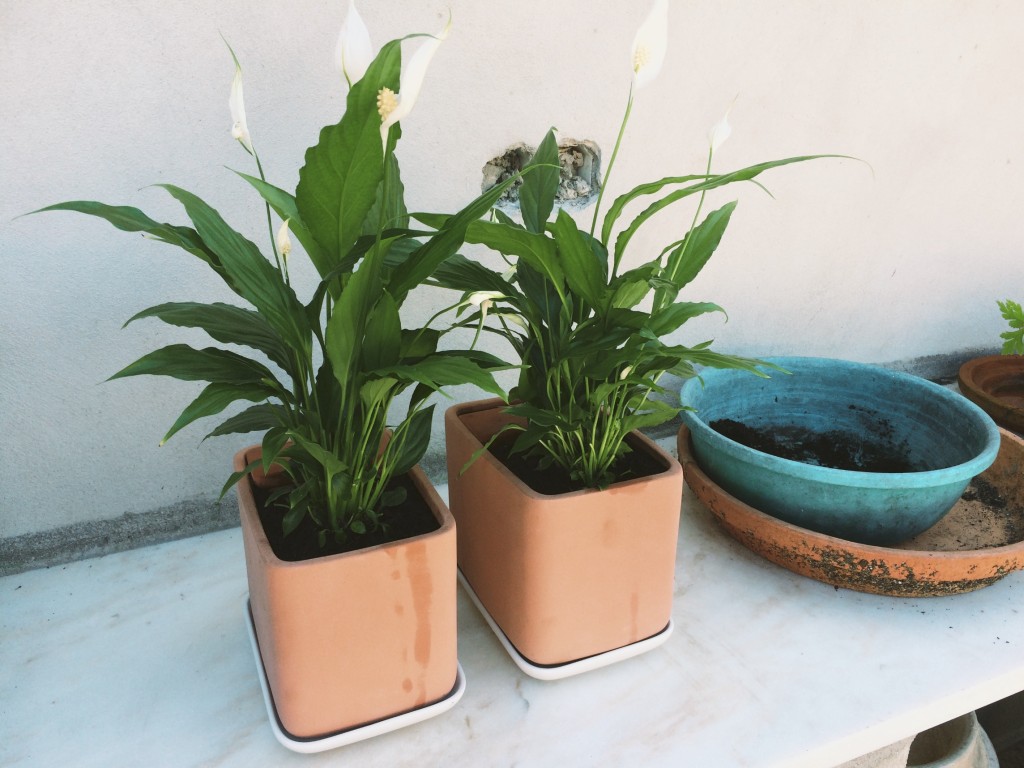Comprei na Ikea dois vasos Användbar (ainda não estão no site português) e duas plantas Spathiphyllum (supostamente para interior e à sombra) para oferecer na Páscoa. Os vasos existem em dois tamanhos e têm um design bastante intrigante. São de terracota com um prato vidrado e dentro têm uma caixinha em terracota que é um reservatório para água. No fim, ficou bastante bonito.